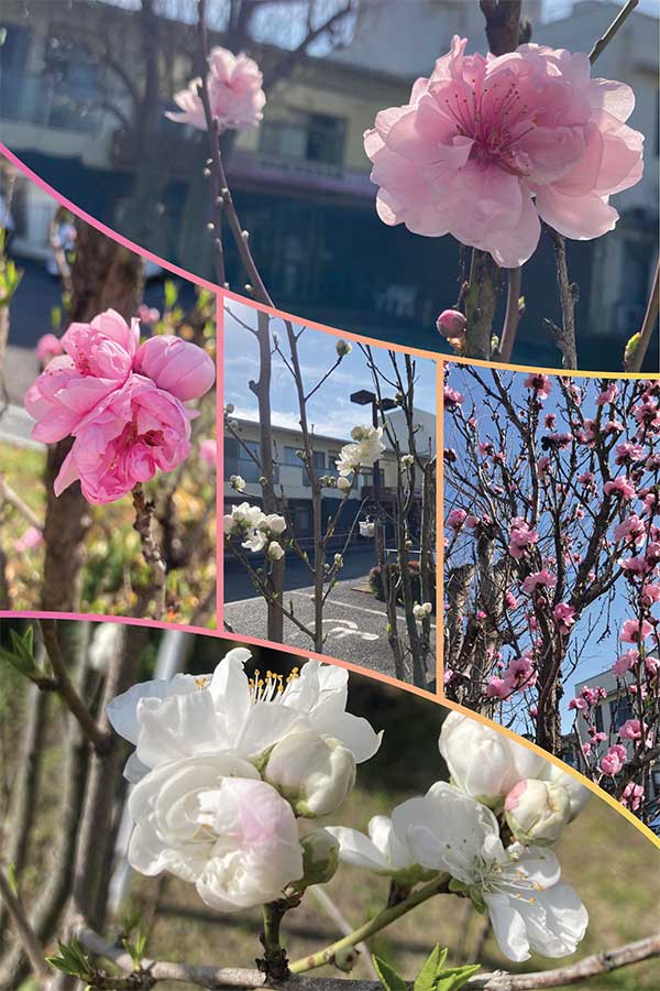 当施設の名前にもあります、「はなもも」が満開を迎えました。ご面会、ご見学の際にはぜひお立ち寄りください(^^♪