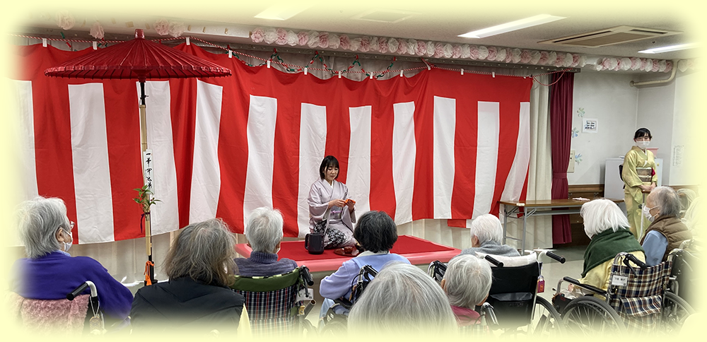 今年は、ボランティアさまによる茶道の作法をご披露いただき、利用者さまには“出来立ての抹茶”を味わっていただきました。