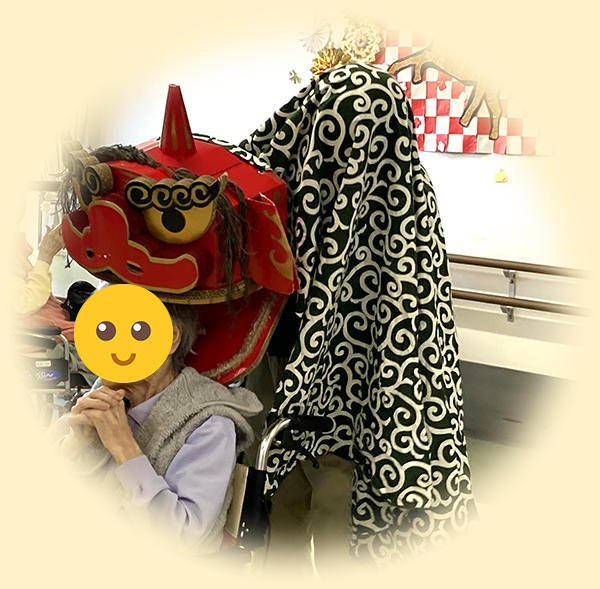 厄除けや無病息災を願い、利用者さまの頭を獅子がパクリ!