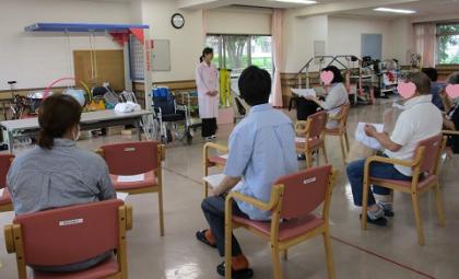当施設にて皮膚科の診療をしていただいております亀山先生より「高齢者の皮膚トラブル。介護施設での安全管理」についてご講義頂きました。介護、看護、リハビリ、デイケア、ケアマネジャー等が参加いたしました。講義の後も介護についての気持ちのこもったディスカッションを職員同士で活発におこないました。講義で学んだことを、施設利用者さまへ反映して参りたいと思います。