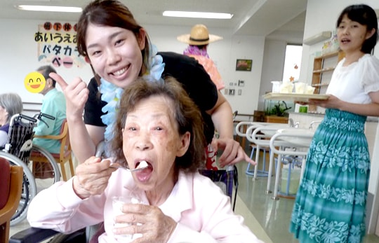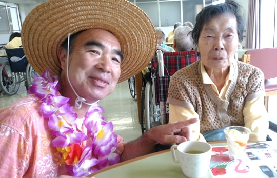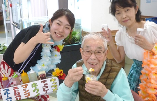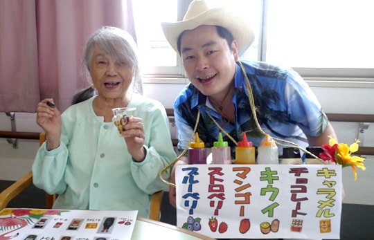 アロハシャツや麦わら帽子に身を包んだ『アイスクリーム屋さん』が、利用者さまのもとに登場。