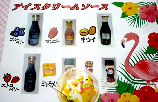 アイスクリームにかけるソースを選ぶにあたり、みなさん「どれにしようかな~?フルーツソースもいいけどチョコレートも良いなぁ・・・」と、真剣に悩んでおられました(^▽^)/