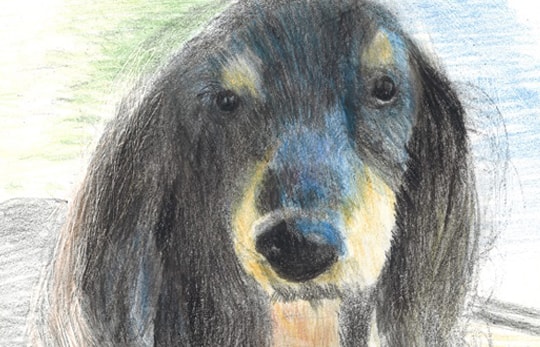 後日、飼っているワンちゃんの写真を看護師さんが持って来ると、さっそく、利用者さんがコツコツと似顔絵を描いてくださいました。特徴を捉えていて、とっても可愛く描けていますね♪