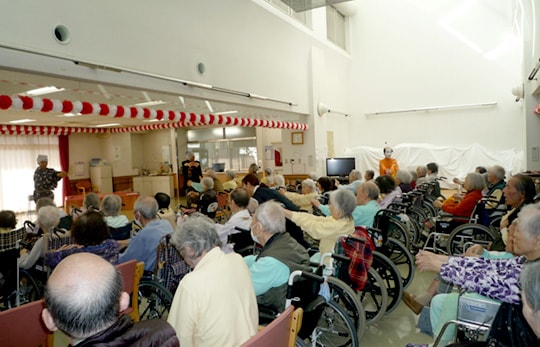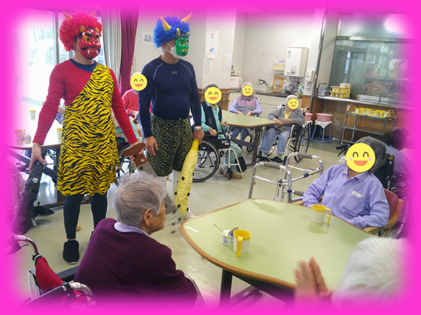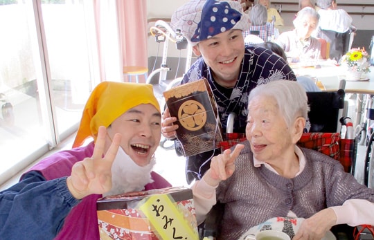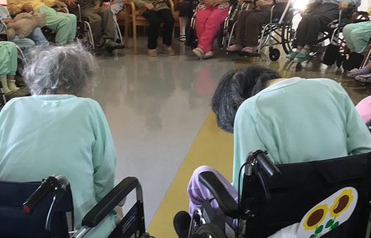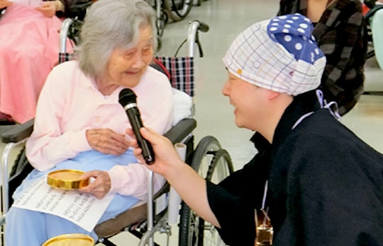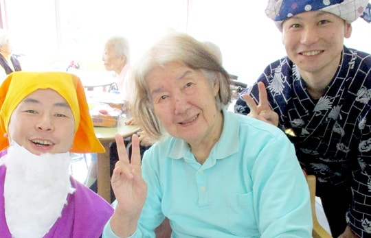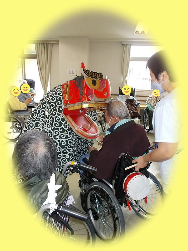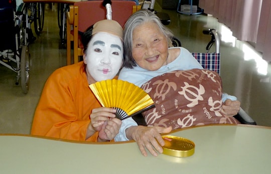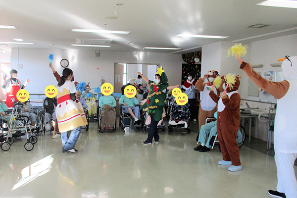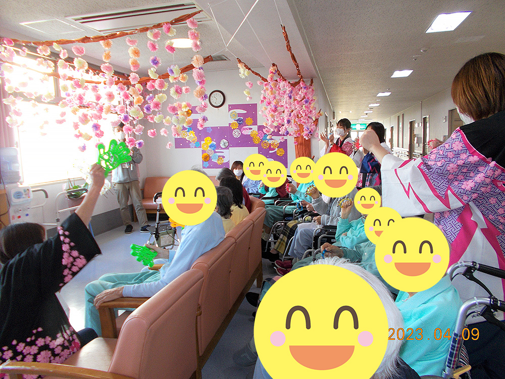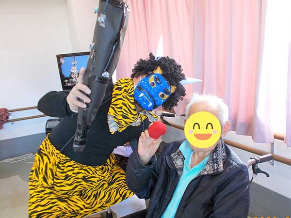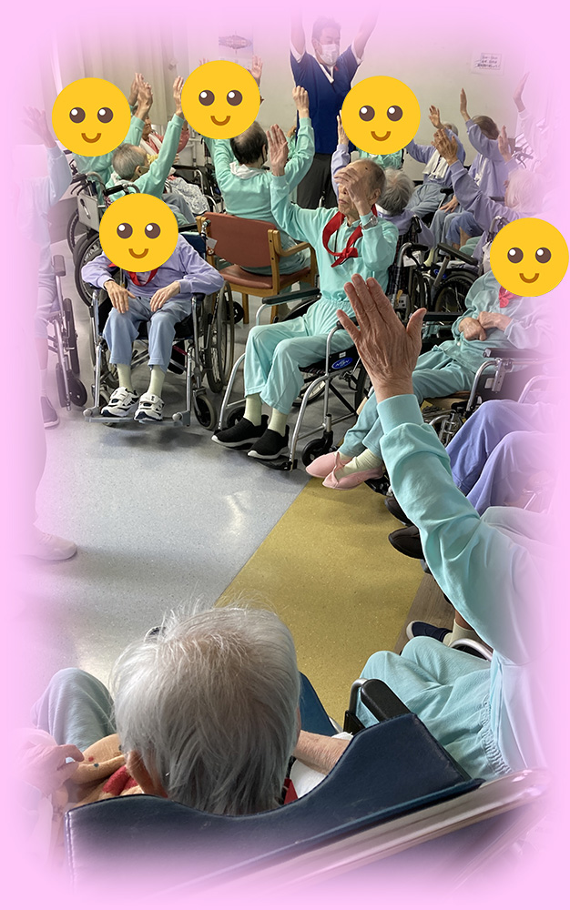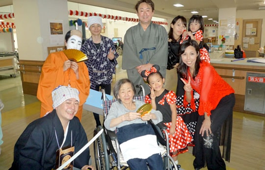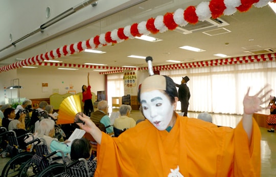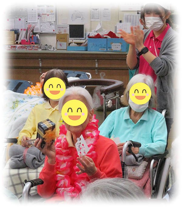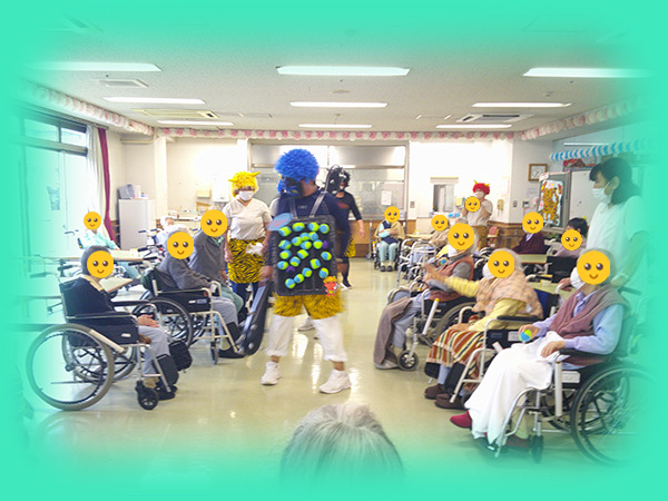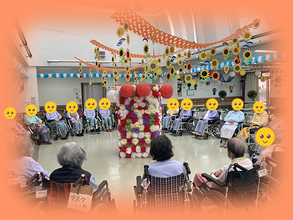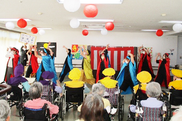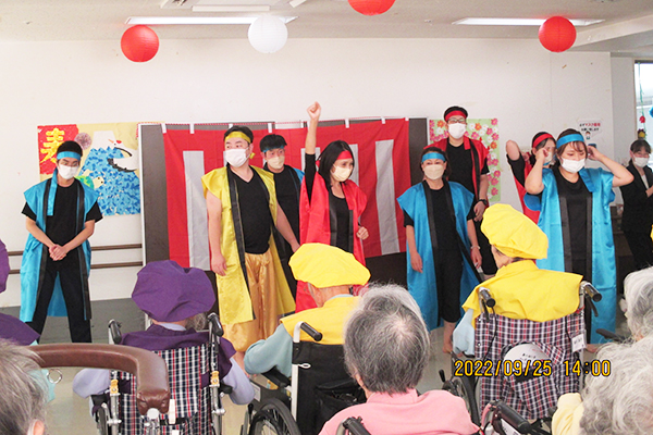 続いて、ボランティアさん達による、本格的な歌や踊りは圧巻でした♪利用者さまも歌ったり、手拍子をしたり、ノリノリ(^O^) 懐かしい歌で涙ぐみ、若かりし頃の曲で昔を思い出し、楽しい曲で笑顔になり、と満喫。皆さんに小判を大盤振る舞い!