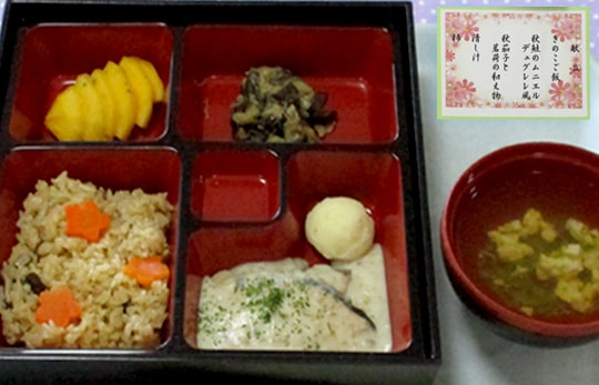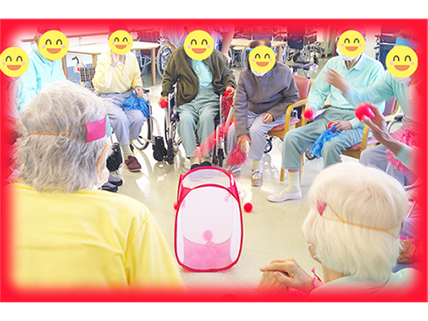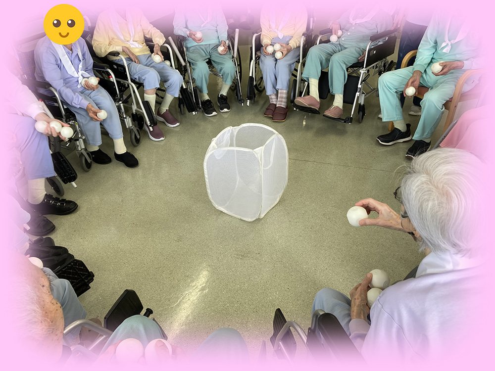 玉入れをしたり、風船バレーで盛り上がりました。みなさん、笑顔で楽しく汗をかきました。行事食も秋満載で季節感を味わいました。