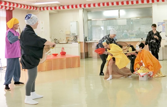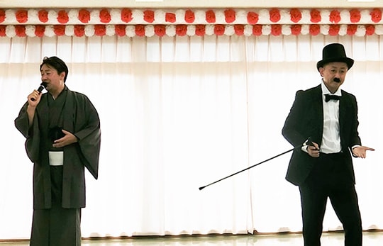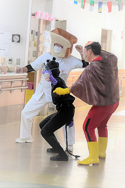 「芸術の秋」ということで、楽しく唄う会を開催しました。まずは、職員による時代劇(?)で腹筋の運動!