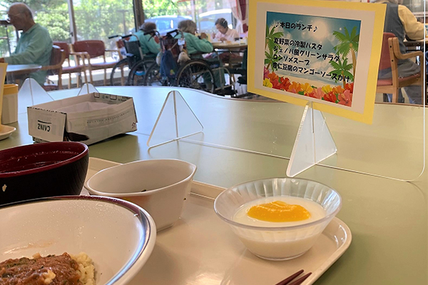 お昼には、はなもも苑の職員用食堂で、職員と同じ食事を召し上がって休憩していただきました。