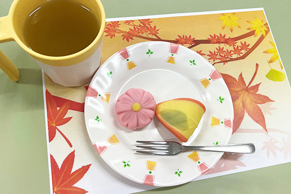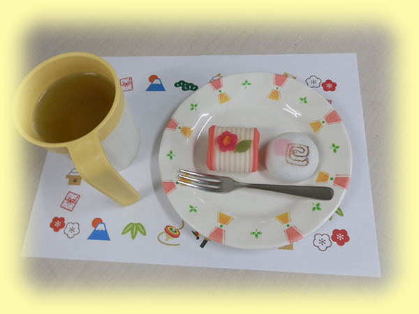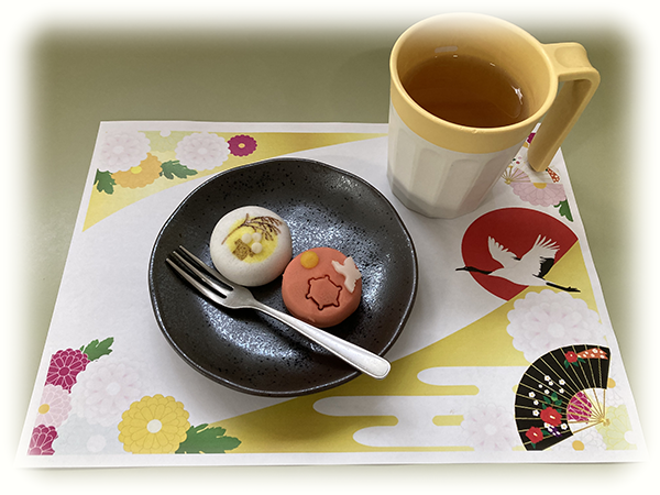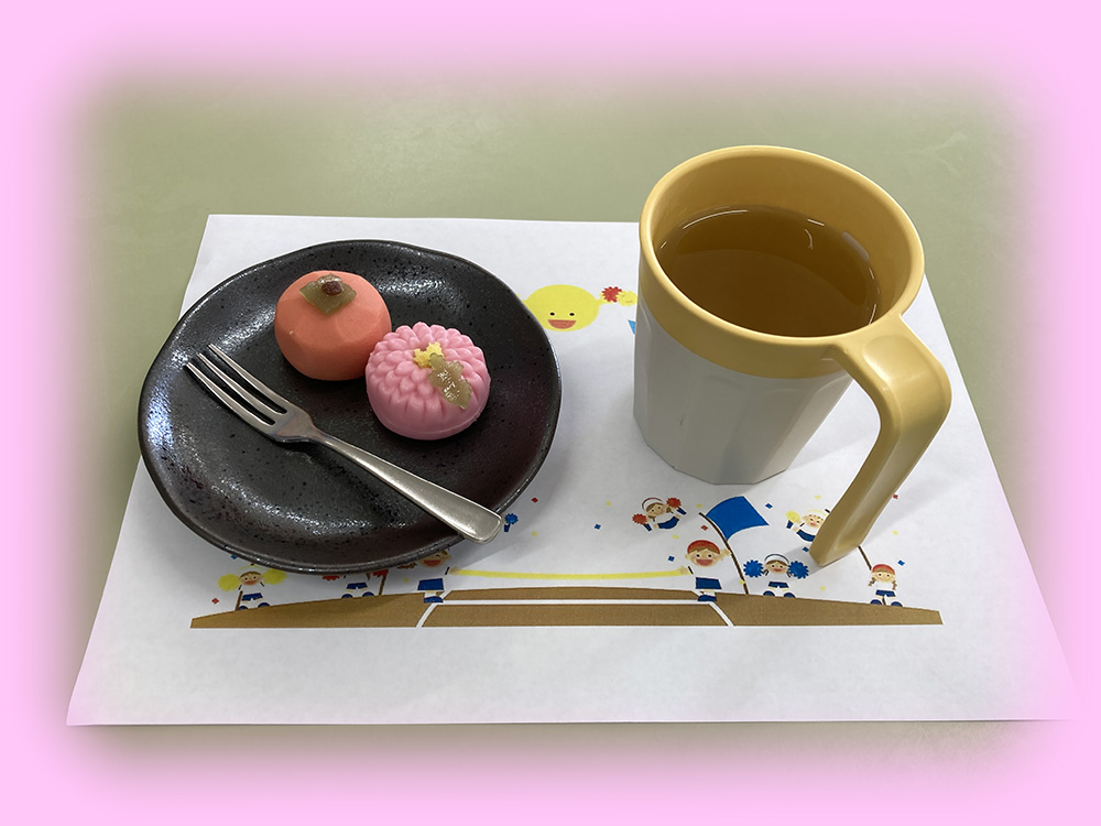 運動の後は、季節の和菓子でほっと一息♪ みなさんに喜んでいただけました。