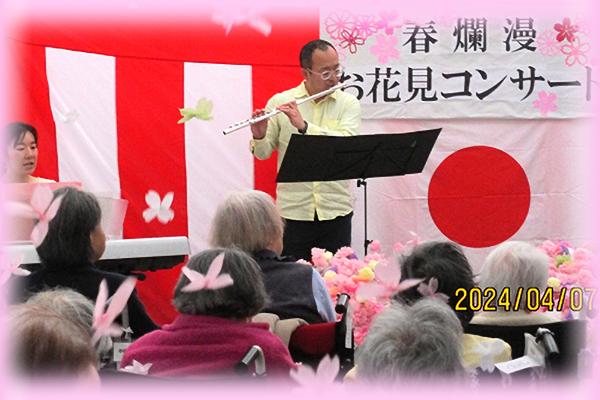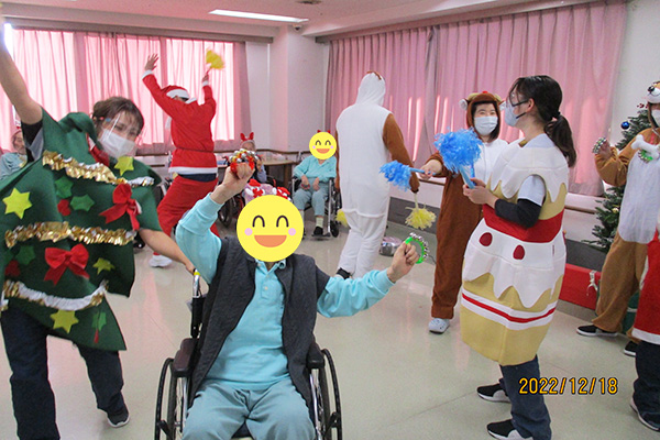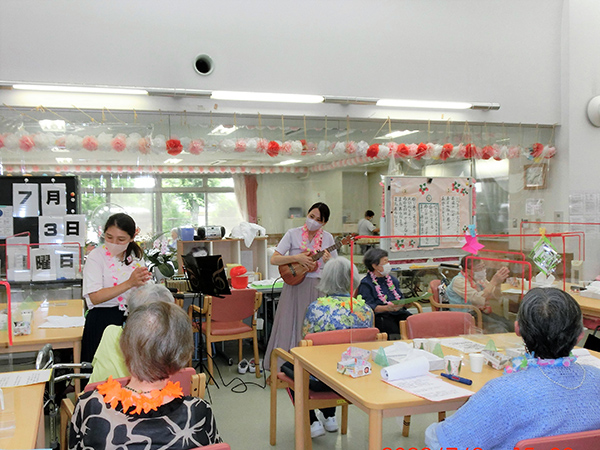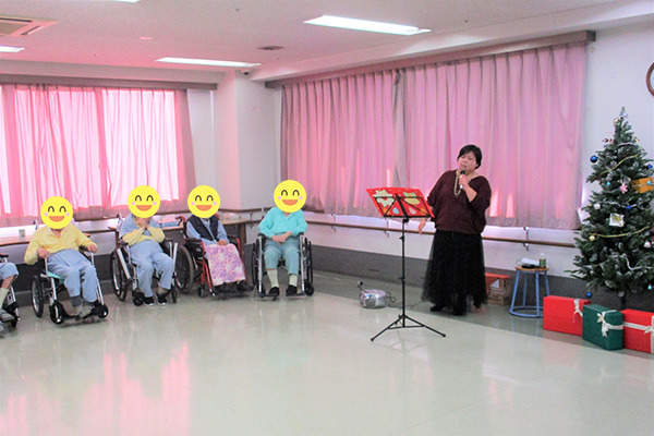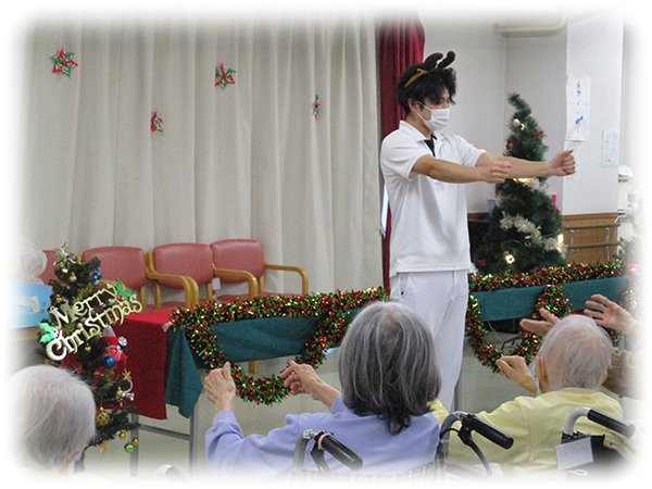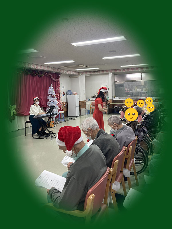 瀬谷ふたつ橋病院にて行われた「瀬谷ヒマナスターズ」の演奏者の皆様によるクリスマス・ウクレレコンサートに、はなもも苑のご利用者さまも参加させて頂きました。
