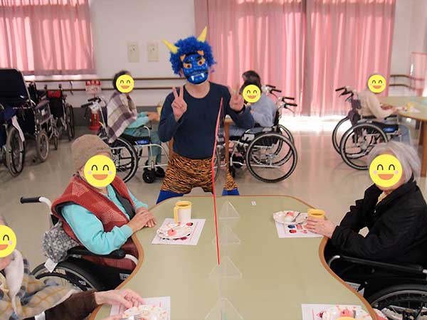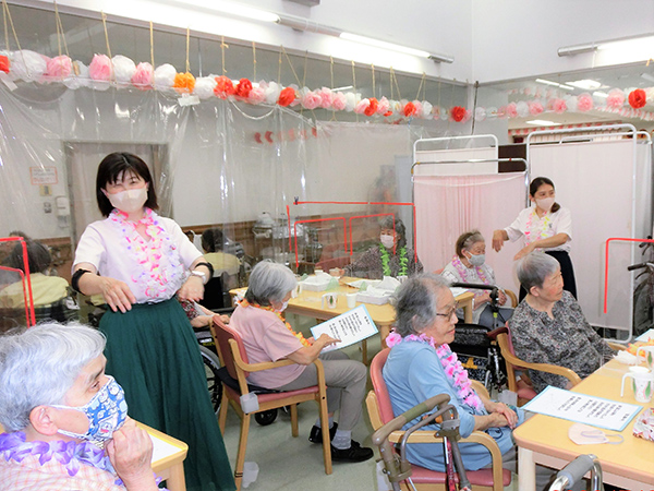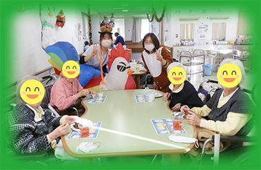 その後、食堂に集まっていた利用者さまと交流し、会話も楽しんでいただきました。