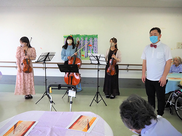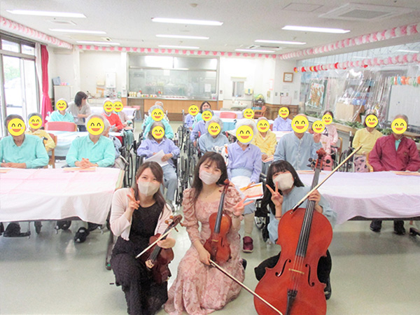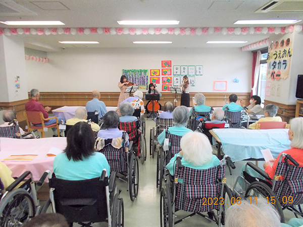 演奏者の方が利用者さまの近くでバイオリン奏でる場面もあり、皆さまの表情が一段と明るくなっていました。