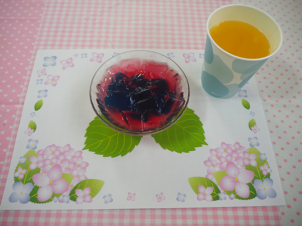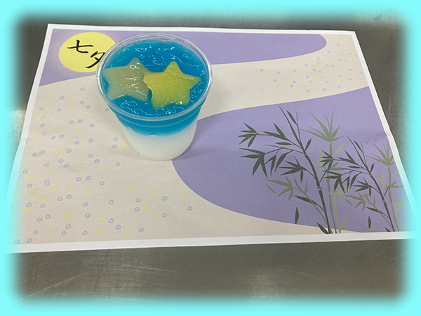 その後、おやつに、星型のフルーツを使った、かわいいゼリーのデザートを召し上がっていただきました。
