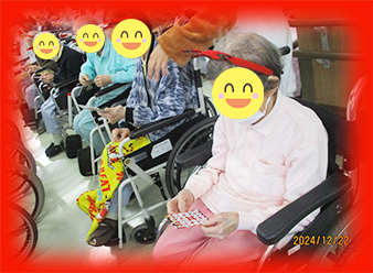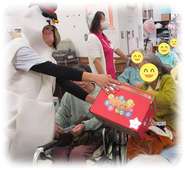 午前中は、ビンゴゲームで大盛り上がり、「リーチ!」「ビンゴ!」と元気な声が飛び交い、ビンゴになった方はプレゼントをお渡ししました♪ 笑顔あふれる、和やかな時間となりました^v^