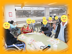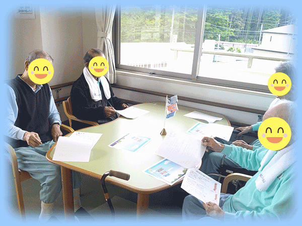 午後は、デイケアに通う利用者さまと一緒に体操をし、脳トレにも挑戦。脳トレでは利用者さまと会話を楽しみながら、和やかな時間を過ごしました。