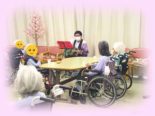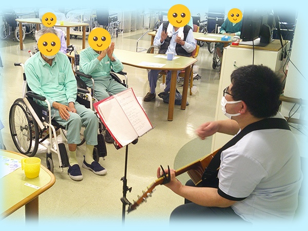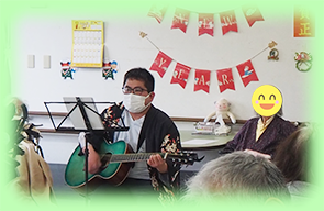 職員のギター演奏では、みなさま、口ずさんだり、拍手で盛り上がりました(^^♪